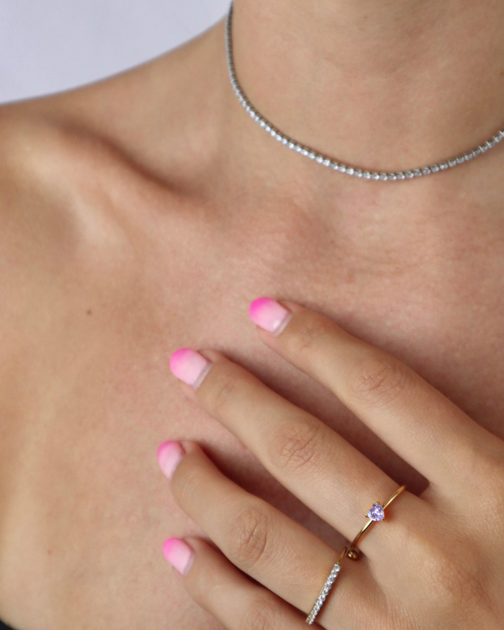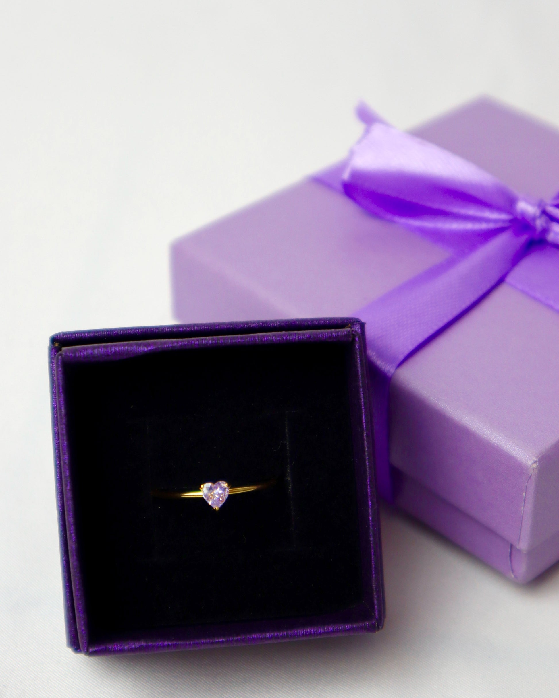 Anello cuoricino in acciaio inossidabile e regolabile disponibile in varie colorazioni sia con zircone argento che lilla.