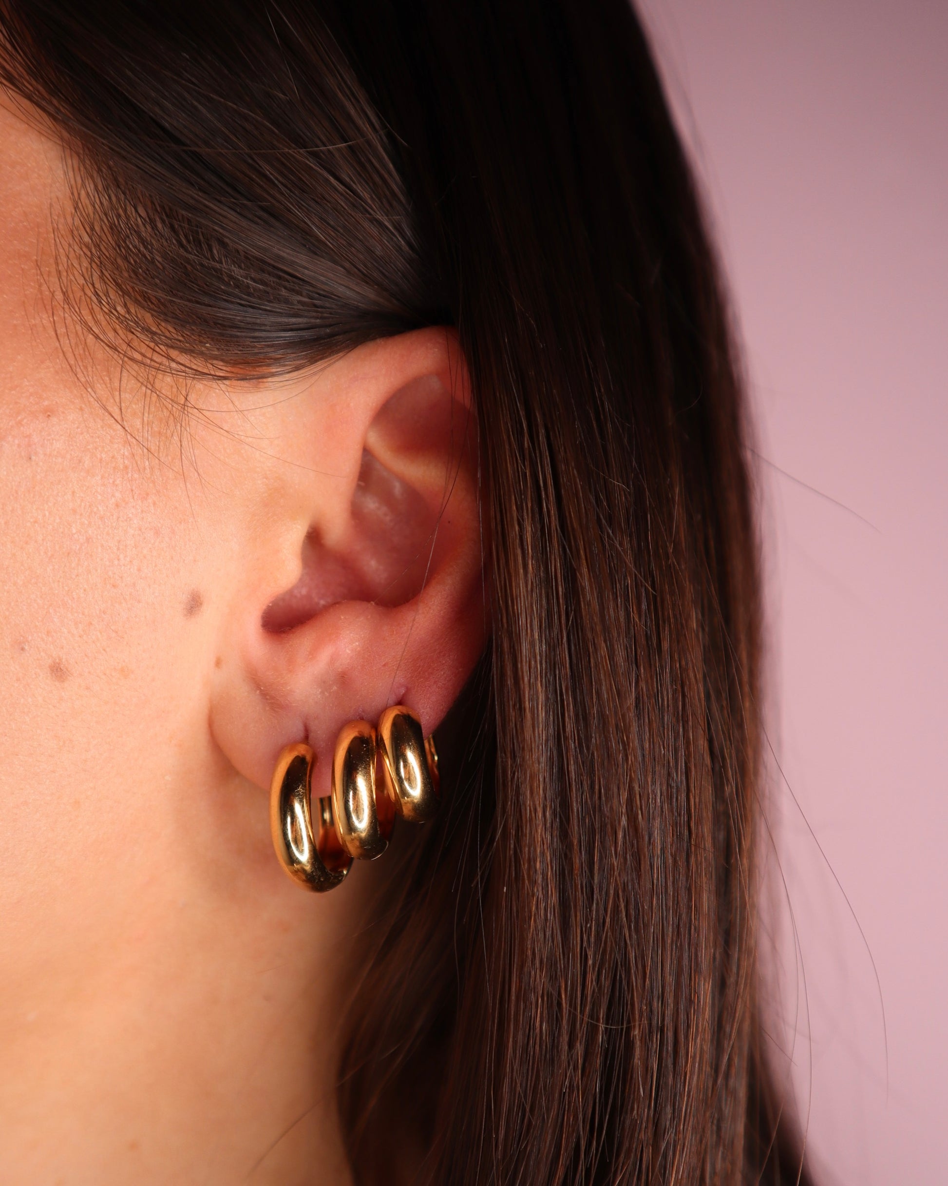 Orecchini orecchini cerchio in acciaio inossidabile disponibili in gold o silver.
